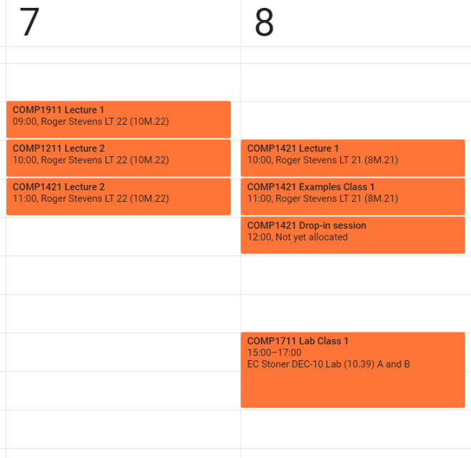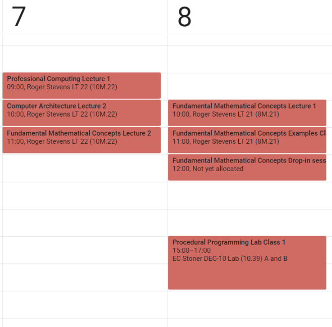 By default, when Minerva timetables are imported into another calendar (like Google calendar), they have the module codes in the event titles: